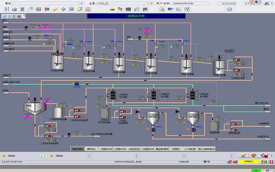 The control system network covers the mine area, slurry pipeline transportation area and smelting area, and is about 150km long in total. Redundant industrial Ethernet is used for the whole network, and clock synchronization control is achieved. The control system has a scale of 16,000 points, and allows network communication with the control devices of dozens of equipment integrators. The control room breaks the traditional nonferrous enterprise control mode, is no longer divided by building but product area. It adopts a new control mode realizing local distributed control of control system cabinet and concentrated control of control system operator station, reducing the number of operators and giving full play to the superiority of the control system.
